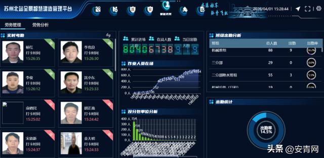 作为集高速铁路、城际铁路、城市轨道交通等多种交通功能及枢纽配套于一体的大型综合交通枢纽,苏州北站项目自2025年3月份进场施工以来,始终秉持“科技兴安、智能管安”理念,以数字化、智能化手段赋能安全生产,构建起全域覆盖、智能预警、高效处置的智慧安防管控体系,为重点工程建设筑牢安全屏障,全力打造智慧工地建设标杆。