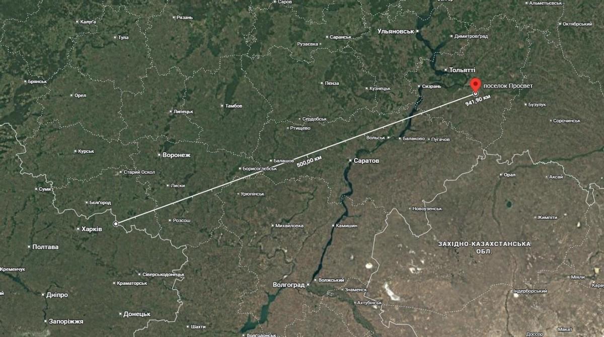 上图为从俄乌边境到俄罗斯萨马拉地区普罗斯韦特村附近的萨马拉抽油站的直线距离。