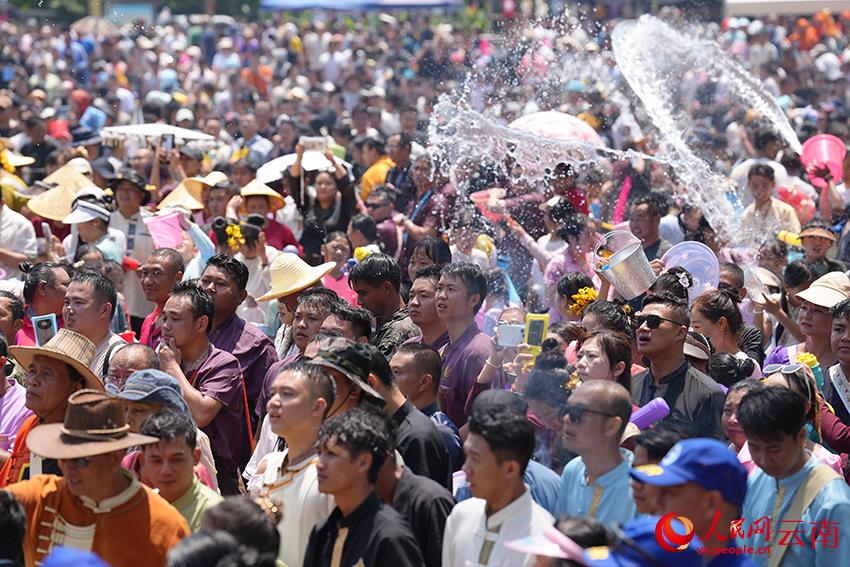4月12日,孟连泼水节在现场娜允广场启幕。人民网记者 虎遵会摄