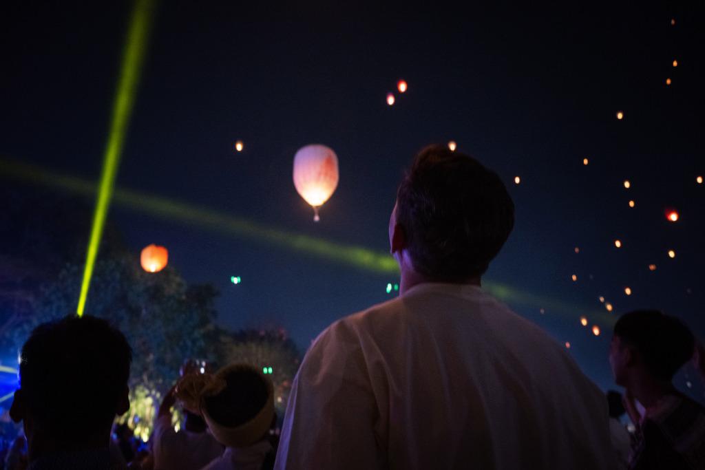 在万千孔明灯升起的河谷里,澜沧江水奔涌向前,埃文也再次祝愿世界和平。