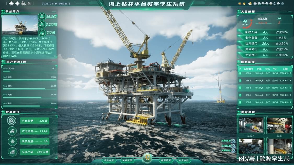 四是远程智能监控。通过数字孪生平台实现油田生产状态的远程监控和专家支持,减少人员出海频次,降低安全风险。