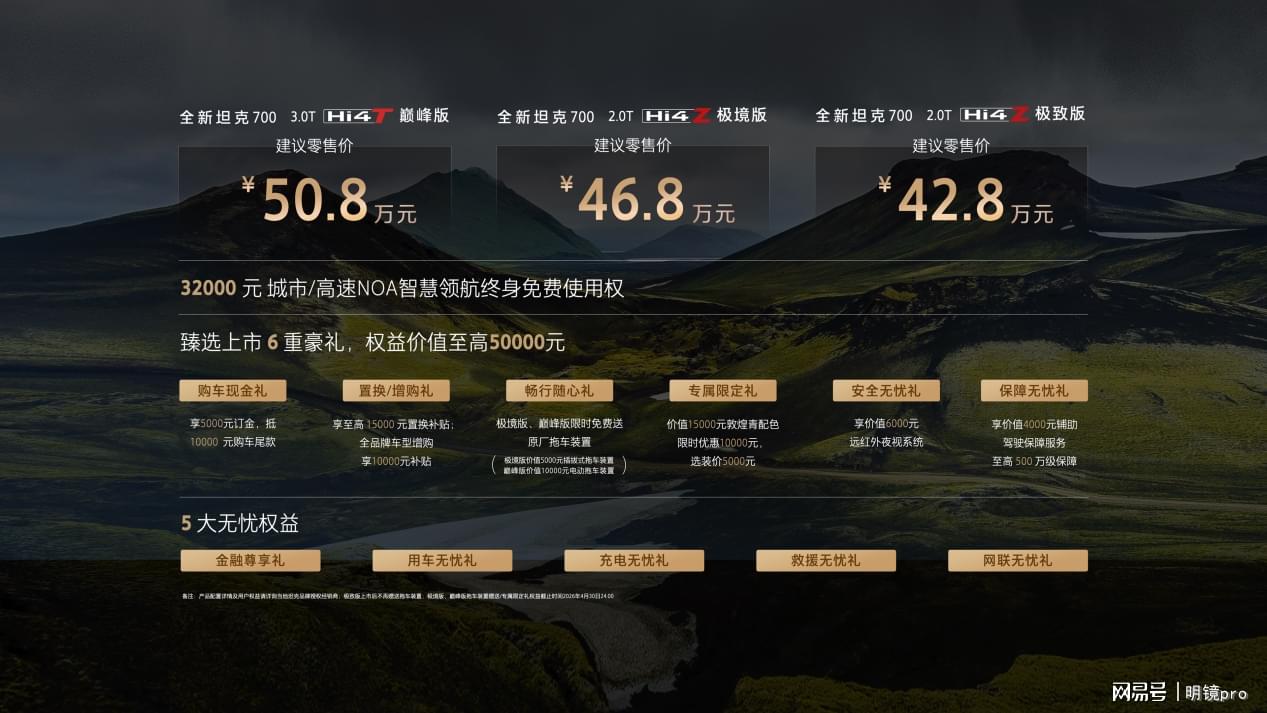 全新坦克700的上市,不仅完善了坦克品牌从300、400、500到700的全梯度产品矩阵,实现了20万级到50万级硬派越野市场的全覆盖,补齐了高端旗舰市场的产品短板,更完成了从大众化“坦克团”到精英化“麒麟荟”的用户服务体系跃迁,实现了产品技术、品牌价值与用户运营的三维向上。