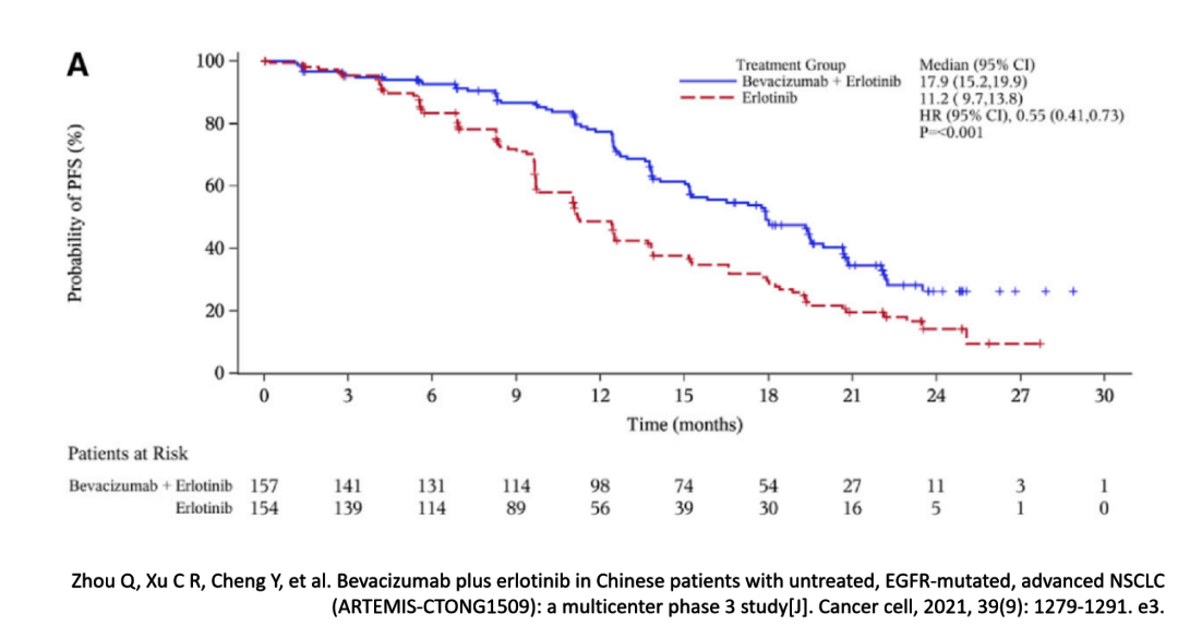 [1] Zhou Q, Xu C R, Cheng Y, et al. Bevacizumab plus erlotinib in Chinese patients with untreated, EGFR-mutated, advanced NSCLC (ARTEMIS-CTONG1509): a multicenter phase 3 study[J]. Cancer cell, 2021, 39(9): 1279-1291. e3.