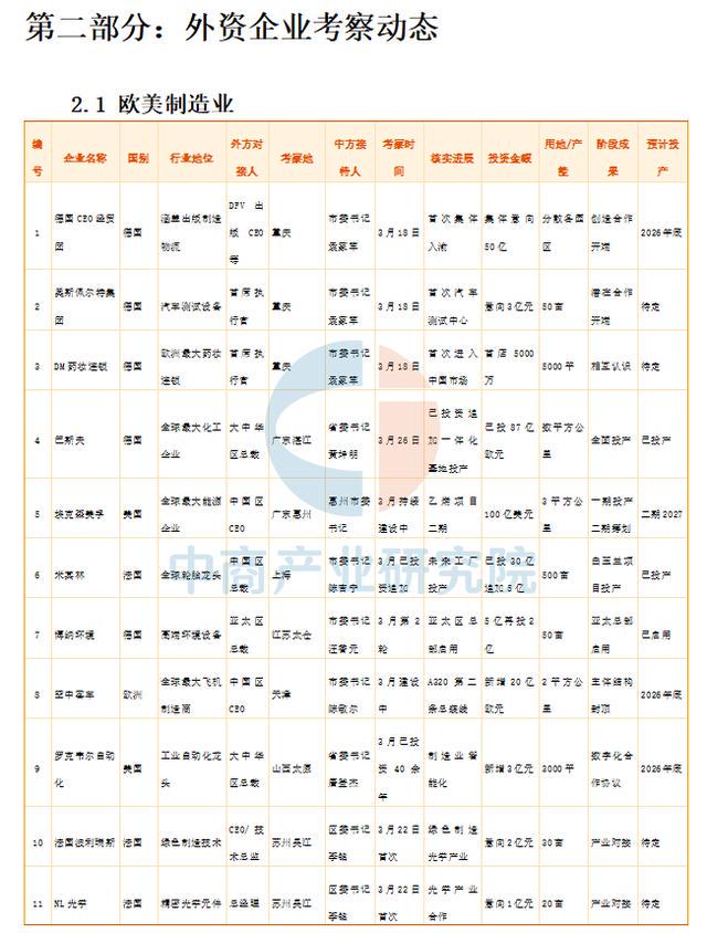 本章节汇总了欧美制造业、日韩企业、港澳台企业考察动态。欧美制造业企业考察热度高涨。