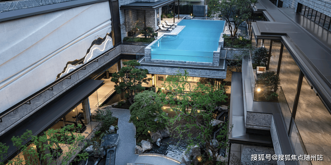 它不光做了下沉庭院,还有这座悬在空中的泳池,让人眼前一亮,它就是单价近20万的上海潮鸣东方同款,让你的心情一下子切换到度假模式。