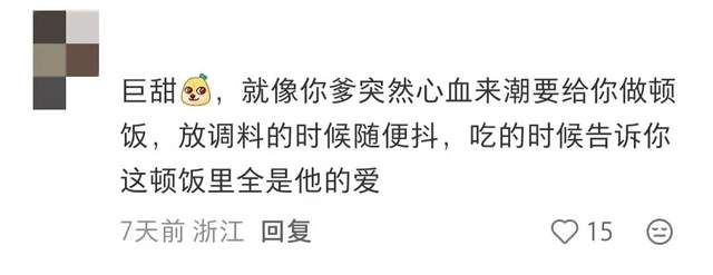 吃过爸爸糖的网友也前来调侃:“就像你爹突然心血来潮要给你做顿饭,放调料的时候随便抖”,香得有点过头了。