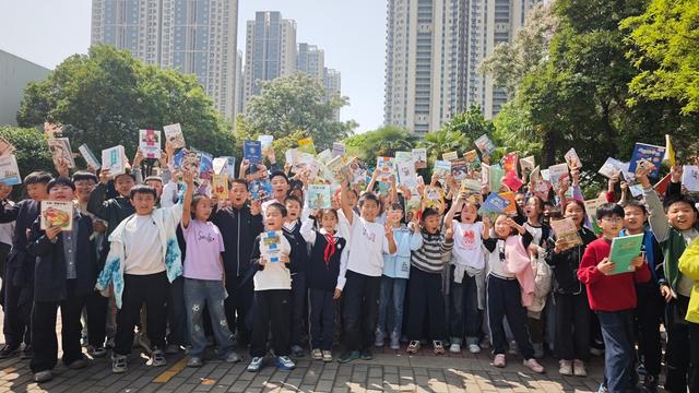 活动最后,同学们挥动手中图书,表达对阅读的热爱和对书主的感谢,一张张笑脸在书香中绽放。