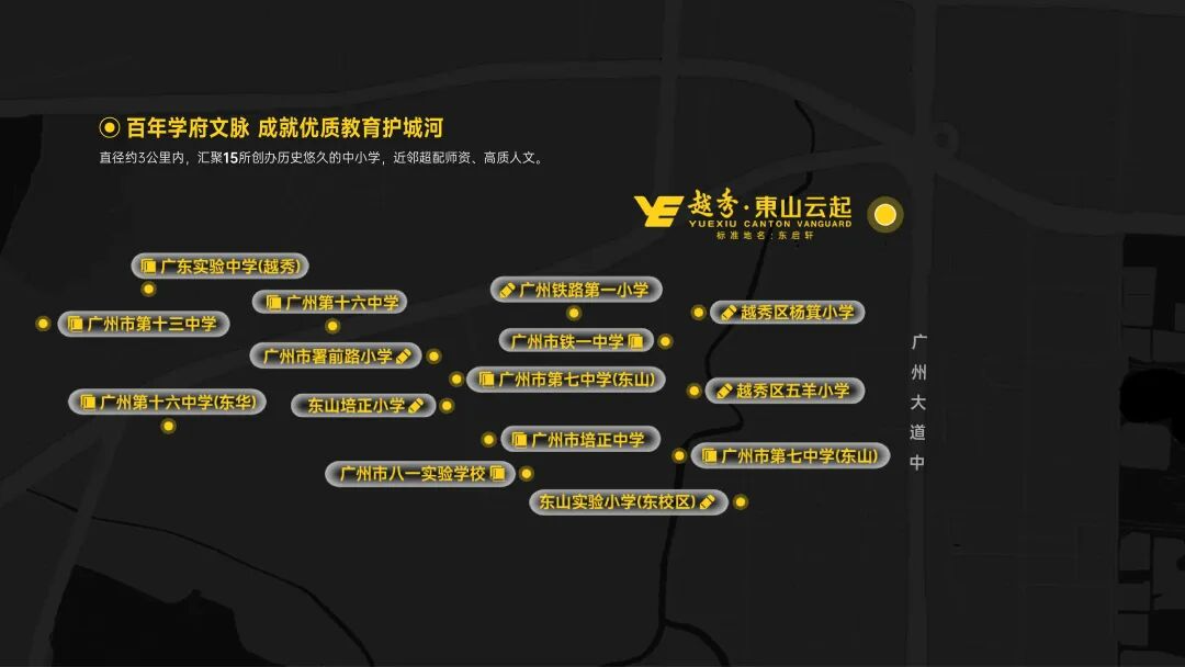 根据2025年广州市越秀区教育局招生政策文件及学区划分地图公示,越秀东山云起所在的广州大道中地段,对口小学为越秀区老牌名校——杨箕小学。这所学校属于越秀区“669”学区化集团化办学核心校之一,教学质量在家长圈口碑很稳。越秀东山云起周边有学校吗?不仅有杨箕小学,3公里范围内还分布着育才中学、铁一中学等优质初中。越秀东山云起对口小学的派位组别里,优质初中比例很高。
