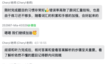 这些授课老师同时也负责课后作业批改,课后辅导——要知道,很多外教是做不到这一点,都是由国内助教批改作业的。老师对每个学生的情况了如指掌,精准解决孩子的问题。如果偶尔知识点听不明白,课后联系老师做1对1的讲解,老师响应很快。
