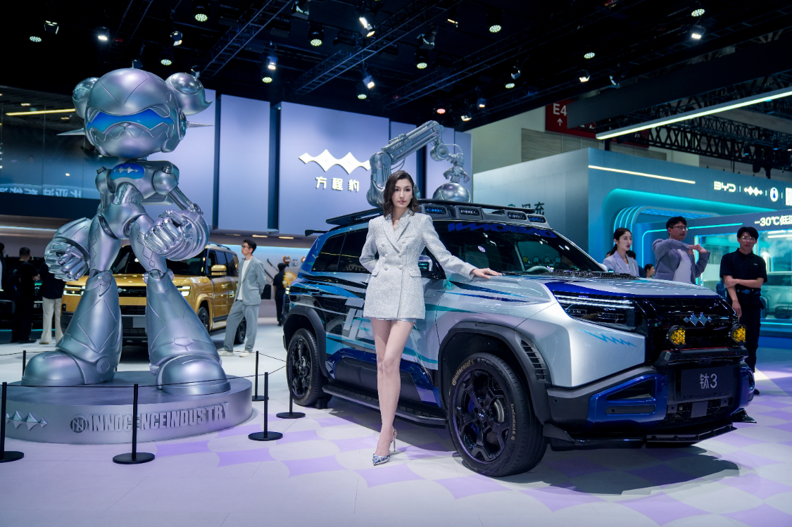 品牌旗下「豹钛双子星」产品矩阵,风格差异化互补、定位相辅相成。豹系列主打智能越野,是智能硬派领域的先行者,亦是驰骋城野、自在探索的出行伙伴;钛系列聚焦城市全能出行,引领都市潮流风尚,承载全家用车场景,构筑多元惬意生活。车模服饰融入机能风解构设计,搭配多层级穿搭形式,诠释越野与都市相融的独特个性理念,非常有高级感。
