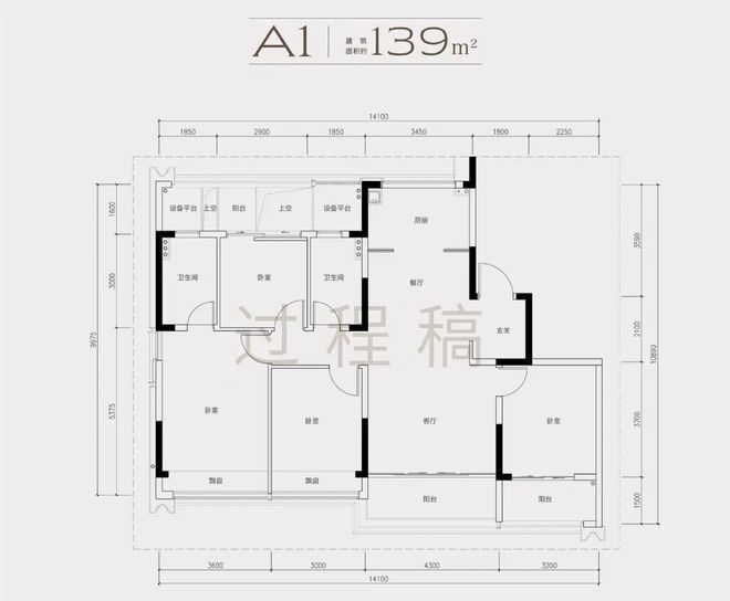 170方户型,是南厅139方户型的放大款,次卧多了一个套房空间。