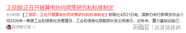 值得注意的是,从3月重磅会议上算电协同首次写入政府工作报告,到4月工信部表示在制定算定协同标准,前后2个月都不到。意味着随着顶层设计的落地,业内普遍预期,算电协同将告别此前的概念探索阶段,进入政策红利释放、产业加速落地的全新发展周期,而电力与算力的深度融合,也将重塑数字经济与能源产业的发展格局。