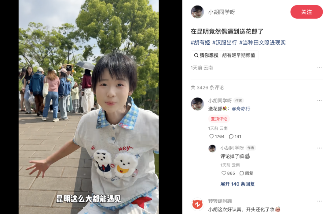 敢穿,敢变,敢做另一个自己——这大概就是@小胡同学呀 涨粉最快的底气。