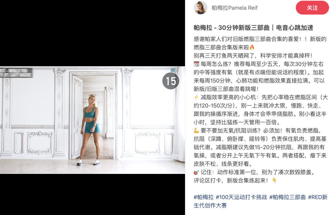 我们活在一个每隔几个月就要重新定义自己的时代,流量逻辑要求人不断变化、不断给出新的刺激。但 @帕梅拉 Pamela Reif 的视频有一种古典互联网主义——她不贩卖身材焦虑,不设计反差人设,不追热点。训练还是那些训练,日常还是那个日常,几年下来内容几乎一成不变。但恰恰是这份「不变」,成了一种稀缺的坚持。
