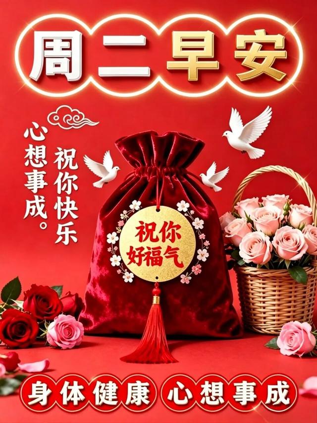 周二早安!希望往后步履从容,好运常伴朝夕,所求皆如愿,所行皆坦途,不负春光不负己。珍惜当下美好时光,心怀温柔向阳而行,事业稳步向上,福气源源不断,四季平安吉祥,一生喜乐无忧。