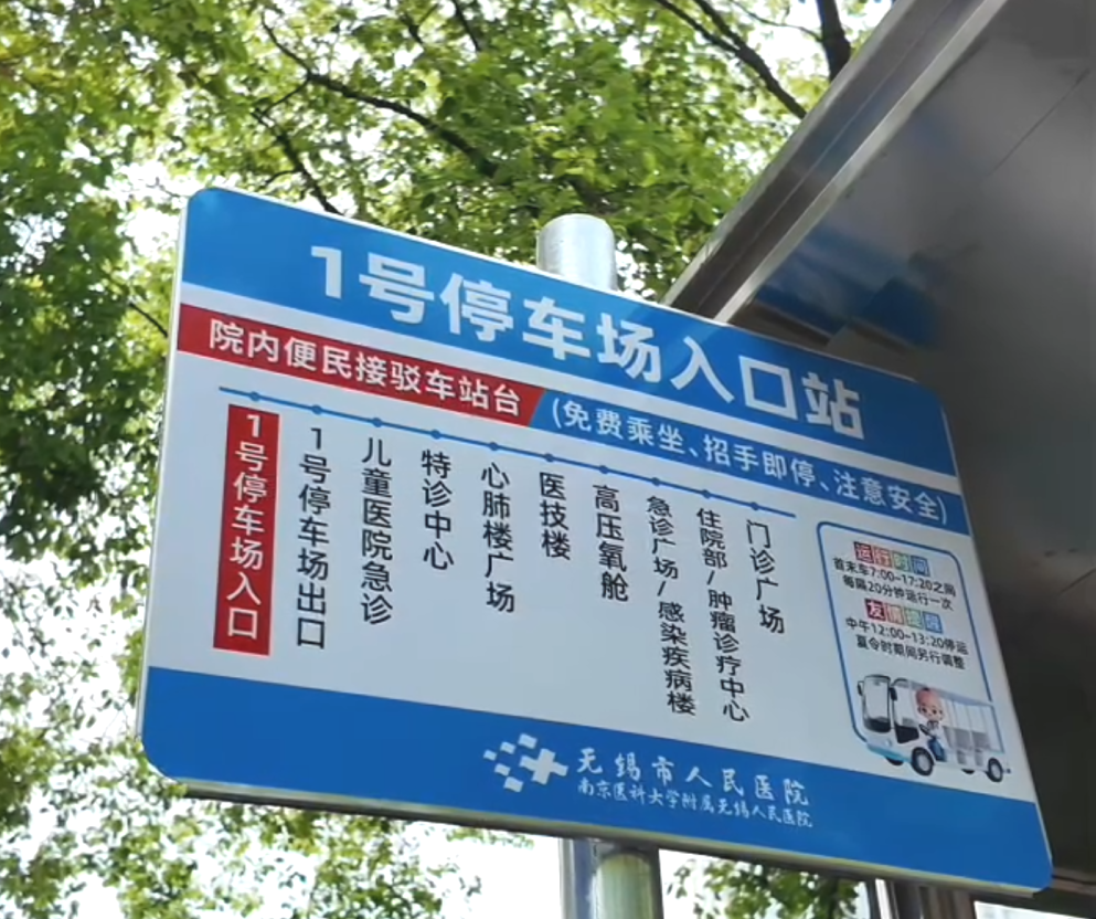 医院总务处处长阚洪明介绍,针对院区广阔、点位分散、患者步行耗时久、易迷路的问题,医院开通便民接驳车,实行单线单向循环,覆盖1号停车场、特诊中心、急诊广场、住院部、门诊广场等9个核心站点,每日7:00—17:20运行,约20分钟一班,实行免费乘坐、招手即停、随上随下。