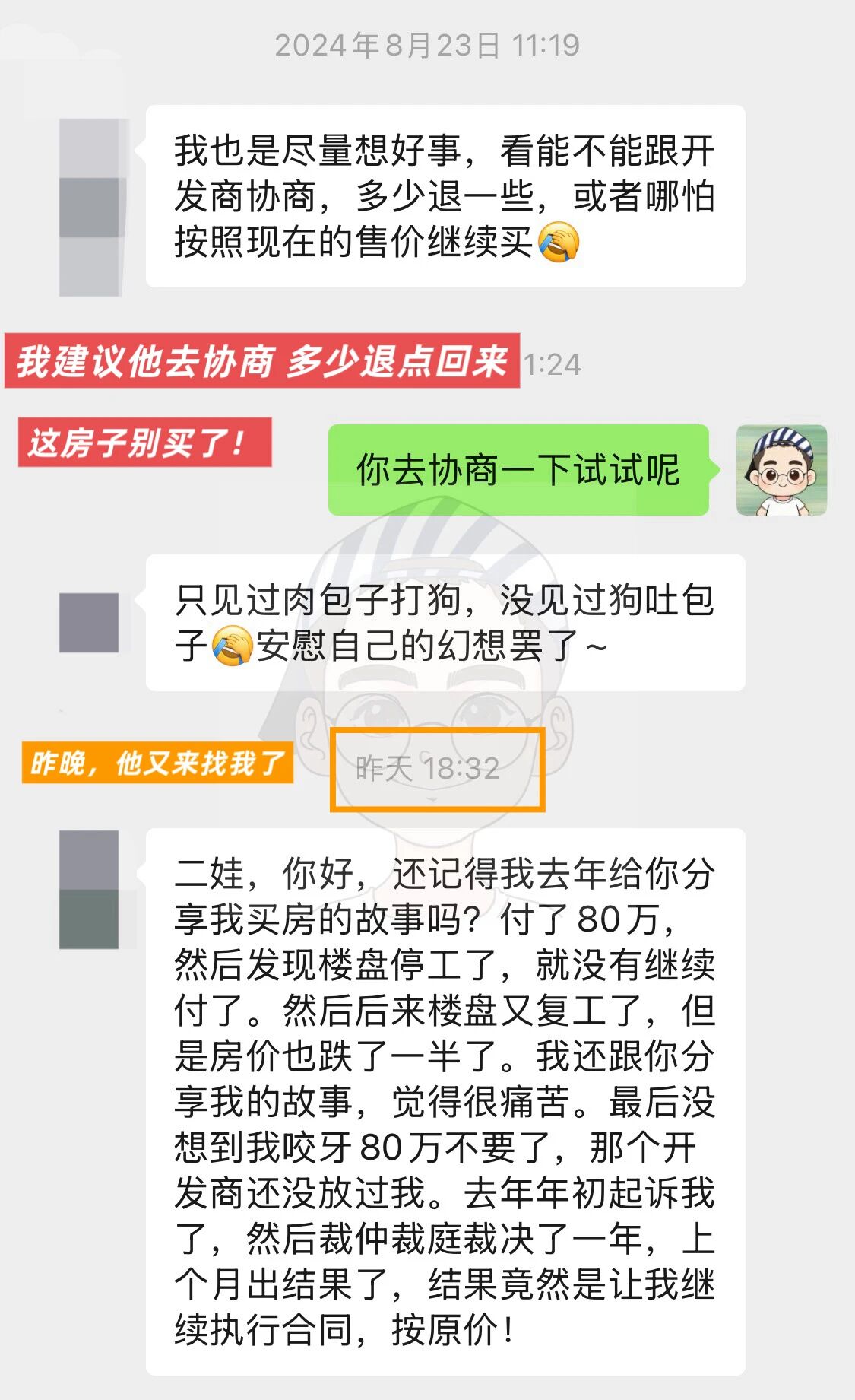 他跟我说,他后面也是选择的毁约,不买这套房子,亏80万他都认了!