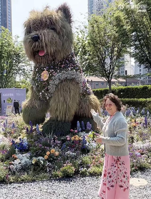 像是陪父母在“潦草小狗”前合影,