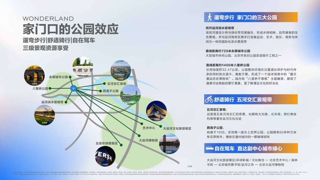 同时,无界浸享国际化滨水景观带(规划中),坐拥三公园环抱,咫尺运河滨水景观带、直线距离约720米就是永顺城市公园、直线距离约1400米便是八里桥公园 ,闲暇时光,漫步河畔、公园,享受大自然的馈赠。