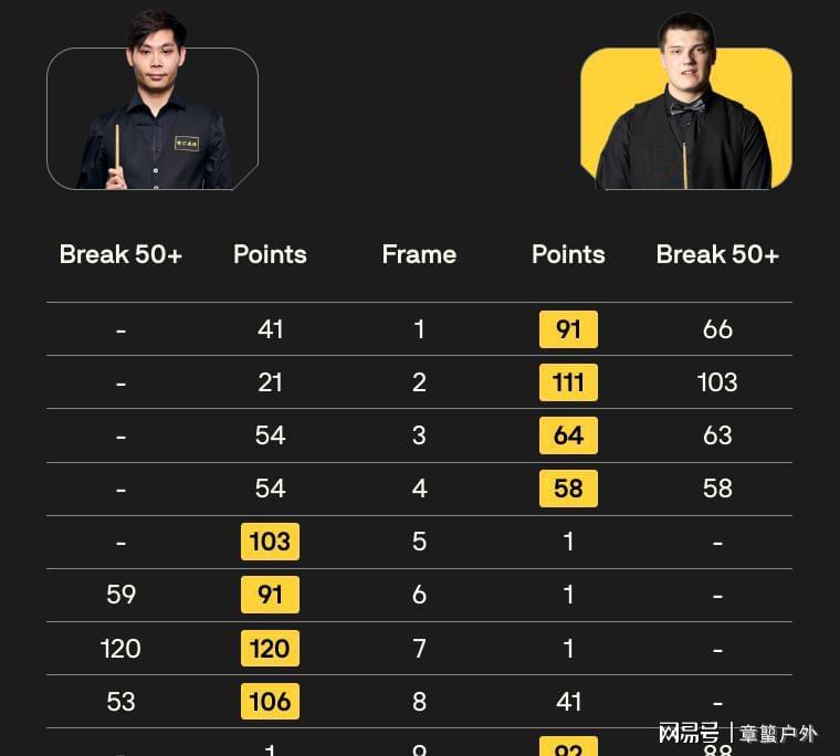 雷佩凡世界排名第31位,吉米.罗伯逊排名第34位,从世界排名分析,两人实力旗鼓相当。00后选手雷佩凡上赛季重返职业赛事,在苏格兰公开赛中,一路过关斩将闯进决赛,最终战胜吴宜泽夺冠,成为第九位来自中国的排名赛冠军、第三位“00后”排名赛冠军。上赛季世锦赛,雷佩凡爆冷凯伦.威尔逊闯进16强。本赛季,雷佩凡状态平平,排名赛还没有8强纪录。