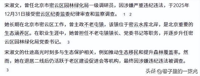 - 新京报《密云区园林绿化局原一级调研员宋淑文接受审查调查》2025年12月31日