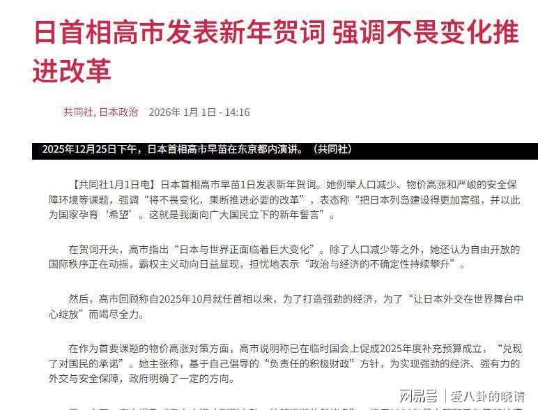 高市早苗在新年致辞里回避中日会晤,日本外务省在台海问题上继续挑衅,经济代表团在政治立场上保持暧昧,这三件事串联起来就表明,东京的右翼政治正在绑架整个国家的对华关系,而日本精英阶层要么无力反抗,要么根本不愿反抗。