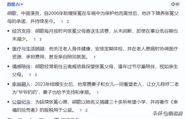 而从那以后每个月胡歌都会资助张冕父母生活费,并且承担起两位老人所有的各种费用。