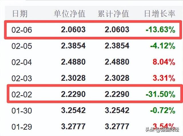 更离谱的是场外净值,2月2日当天,基金单位净值从3.2838元骤降到 2.2494元,单日31.5%的跌幅,远超当天国际白银期货25%的跌幅,这波下跌直接刷新了公募基金的纪录。