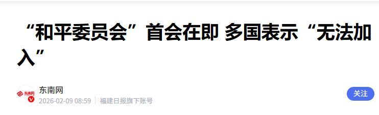 东南网 2026-02-09 “和平委员会”首会在即 多国表示“无法加入”