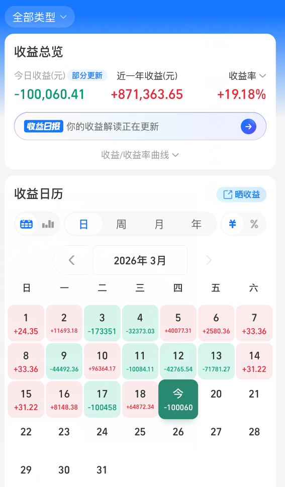 大龙不神,操作的话肯定是有对有错,但不管怎么过程如何,结果肯定会是盈利的,我就问你一句,你见过追涨杀跌,最近一年还能赚100多万的人么,大龙是有信心盈利的,用结果说话,大龙昨天清仓了恒生科技,有色资源,新能源车,机器人,加了CPO通信和光伏,今天光伏涨的,目前有色还是跌的,恒生科技也是大跌,就新能源卖飞是涨的,这点大龙道个歉,每一份信任都沉甸甸的,这次是我判断不够周全,没能扛住短期波动的干扰,让大家错失了利润,我真心跟大家说声抱歉。赛道的长期逻辑依旧清晰,后续我会沉下心打磨思路,更加严谨把控节奏,用更稳的操作弥补这次的不足,也谢谢大家一直以来的包容与陪伴,我定会倍加珍惜这份信任。