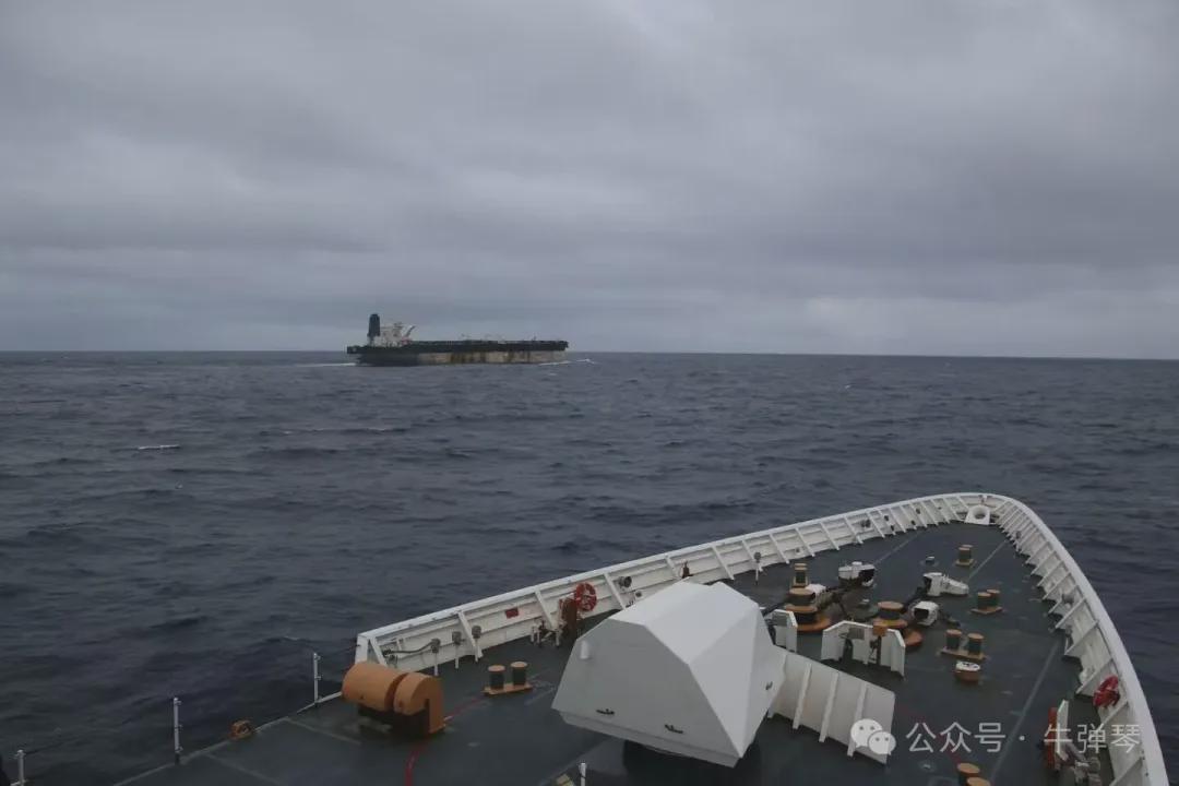 油轮附近,还有几艘俄罗斯的护航军舰。