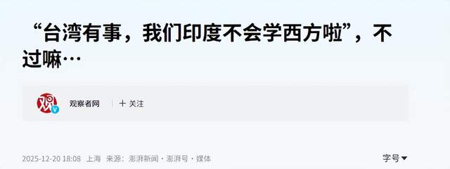 但没想到印度却直接撂了挑子,明确表示不掺和台海的事。