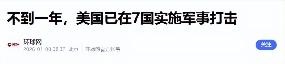 如果说北极争端尚带几分战略试探色彩,那么美国在全球范围内的军事扩张,则展现出毫不掩饰的激进与血腥。令人震惊的是,在重返执政不足一年的时间里,美军的打击名单已覆盖七个国家。