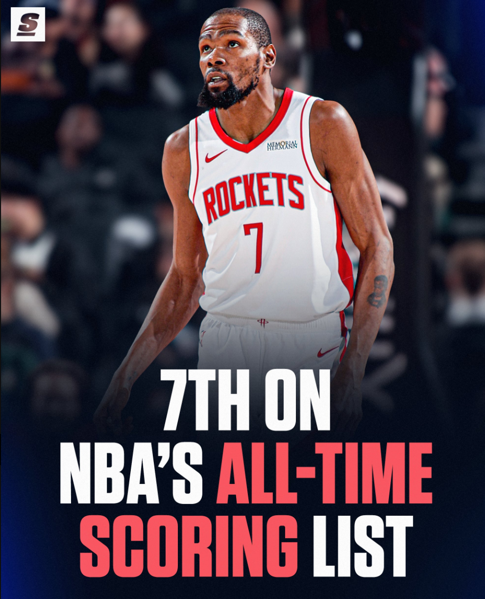 火箭记者Bradeaux写道:杜兰特完成31421分,而且他的得分还在提升,超越张伯伦后他会超越更多人,GOAT。