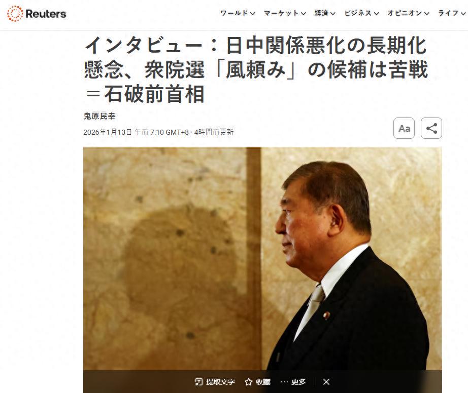 2026年1月12日,日本前首相石破茂接受路透社采访时的表态,直接将本就紧张的中日关系推到了更尴尬的境地。