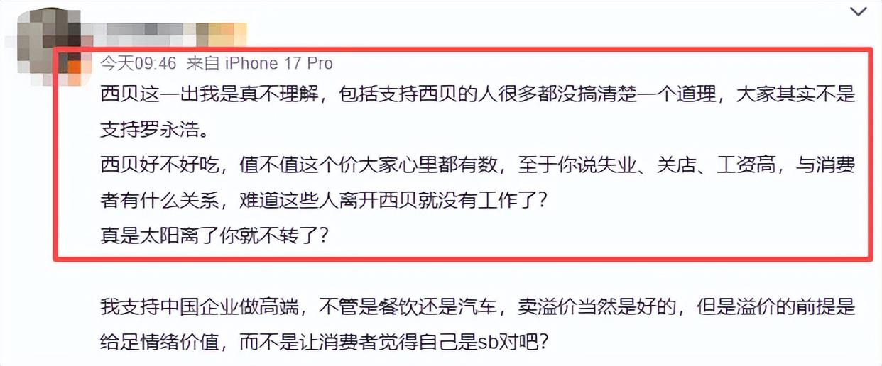 顺带夸赞一波西贝的负责人有态度,知错能改员工不离不弃等等,尽管评论区里的网友不少觉得,这是在放屁。
