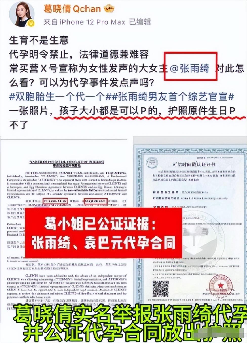 1月24日,张雨绮前夫的前妻葛晓倩在社交平台爆料发文,并晒出警方调查结果,公正文件等多重证据。