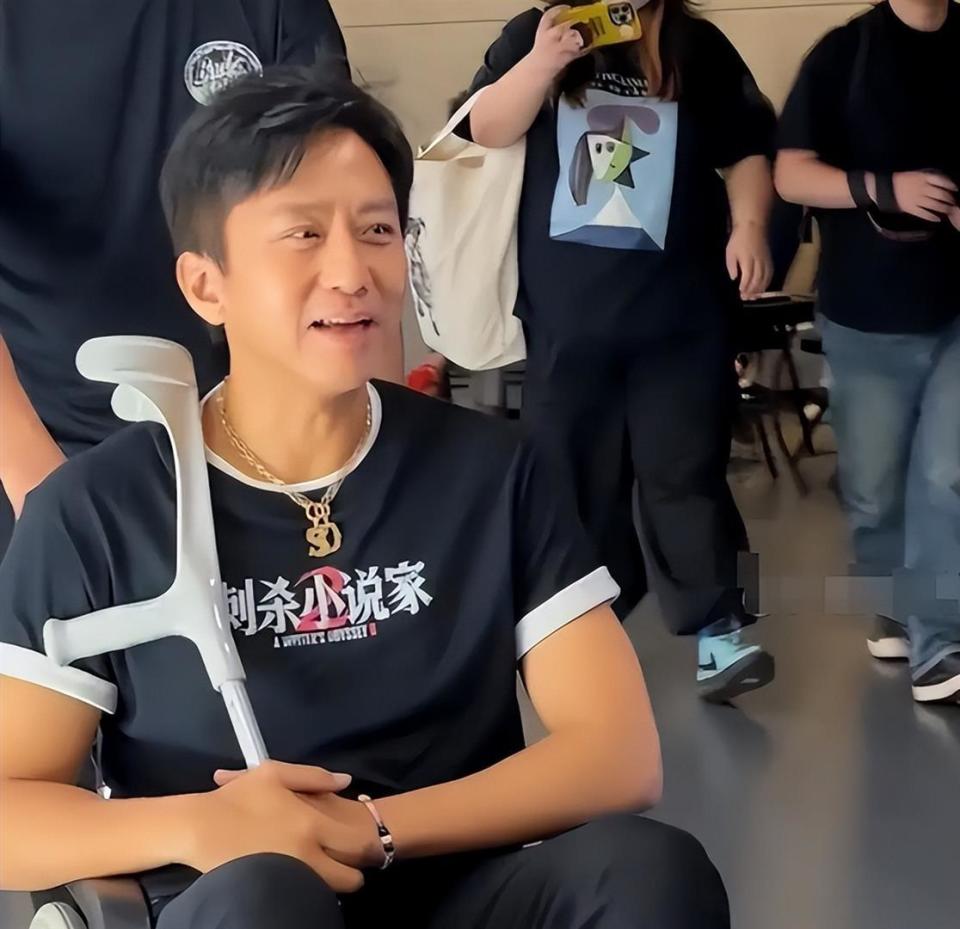 这种“硬扛”,邓超不是第一次。 早在多年前,他还没成名时,为了给身患癌症的姐姐和尿毒症的父亲挣医疗费,他疯狂接戏,一度累到尿血。 后来录《奔跑吧兄弟》,他在“百人赛跑”环节中摔伤导致手臂骨折。 为了不耽误录制,他硬是忍痛录完才去医院,结果伤势加重。 2023年,他宣传电影《刺杀小说家2》时,是坐着轮椅亮相的,原因是在打篮球时小腿受伤。 同年主持金鸡奖颁奖典礼,他拄着拐杖就上了台。 这些碎片拼凑起来,是一个习惯性把身体放在事业之后的邓超。