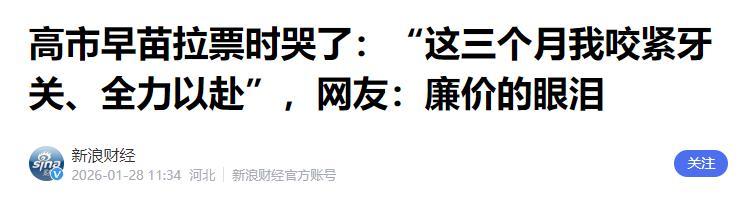 高市早苗的眼泪,既无法唤起国民谅解,亦不能撬动选民支持,更无力扭转日本当前的地缘困局。