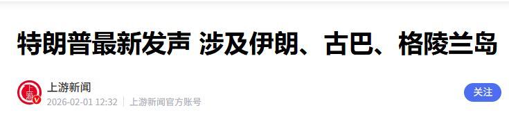 上游新闻 2026-02-01 特朗普最新发声 涉及伊朗、古巴、格陵兰岛