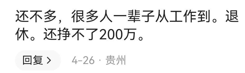 我看好多人都觉得200万不算什么,先搞清楚挣200万和存200万是两码事,这里说的是存款不是资产,在有房有车且无房贷车贷的情况下还有200万现金存款,这样的人会多吗?