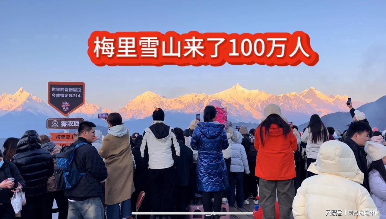 春节假期过半,梅里雪山景区游客从大年初一到初四,天天早晨人山人海,游客排成人墙,里三成外三层,不论是雾浓顶观景台、一棵树网红打卡地,每天早晨七点到九点,(飞来寺、雾浓顶、网红一棵树所有游客、加起来至少超10万游客一起观赏日照金山奇观)、每个观景台都上演人从众。