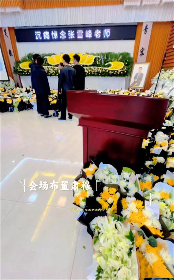随着灵堂内景被曝光,无数网友隔着屏幕红了眼眶。整个灵堂布置得肃穆而简洁,没有繁杂的排场,没有多余的装饰,目之所及全是黄色、白色的菊花,清一色的黑色包装,在昏暗的灯光下,透着刺骨的哀伤。张雪峰的遗像被层层鲜花紧紧包裹,下方用鲜花摆成了一本翻开的书本模样——这个细节,藏着对他一生的注解,读了一辈子书,讲了一辈子升学干货,到最后,连告别都带着书卷气,仿佛他只是暂时放下书本,只是换了一个地方,继续传递知识与力量。