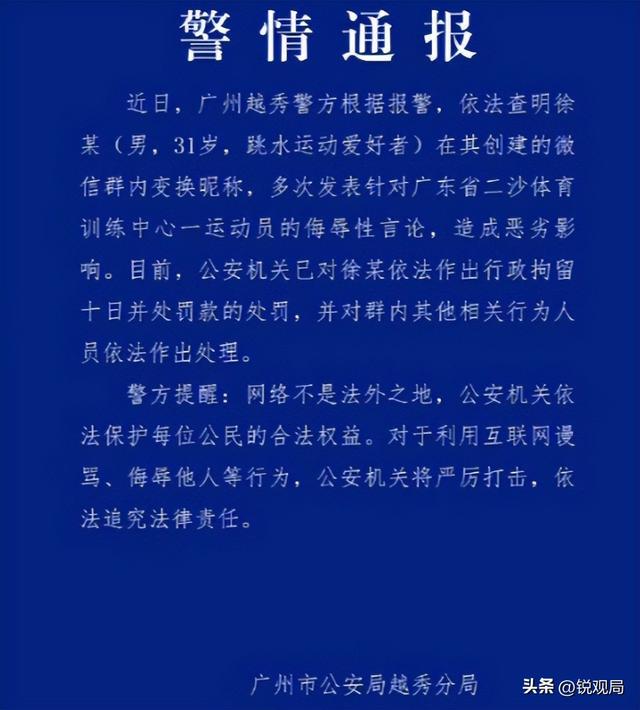 群主徐某是一名31岁的跳水爱好者——令人费解的是,自称喜欢跳水的他,竟带头恶意攻击跳水奥运冠军。