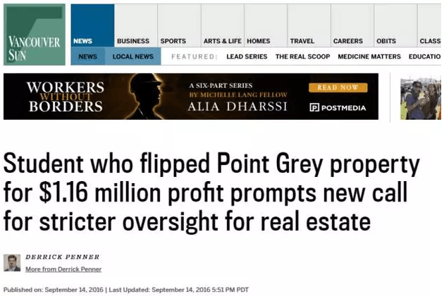 原标题:一套房赚近600万 中国学生温哥华炒房震惊加拿大