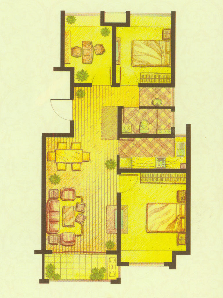 恒盛鼎城·圣都汇 9号楼01室 三房二厅 95㎡ 户型图
