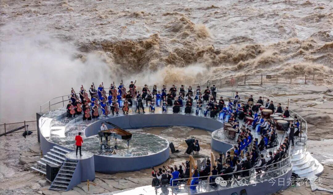 ▲图为临汾市区财神楼阳台音乐会现场