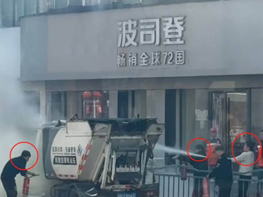 前几天的一个中午,北仑街头一辆环卫车车头突然冒烟起火,危急时刻,沿街商户、小区保安自发组成“灭火小分队”开展扑救,在消防员到场前成功将大火扑灭。