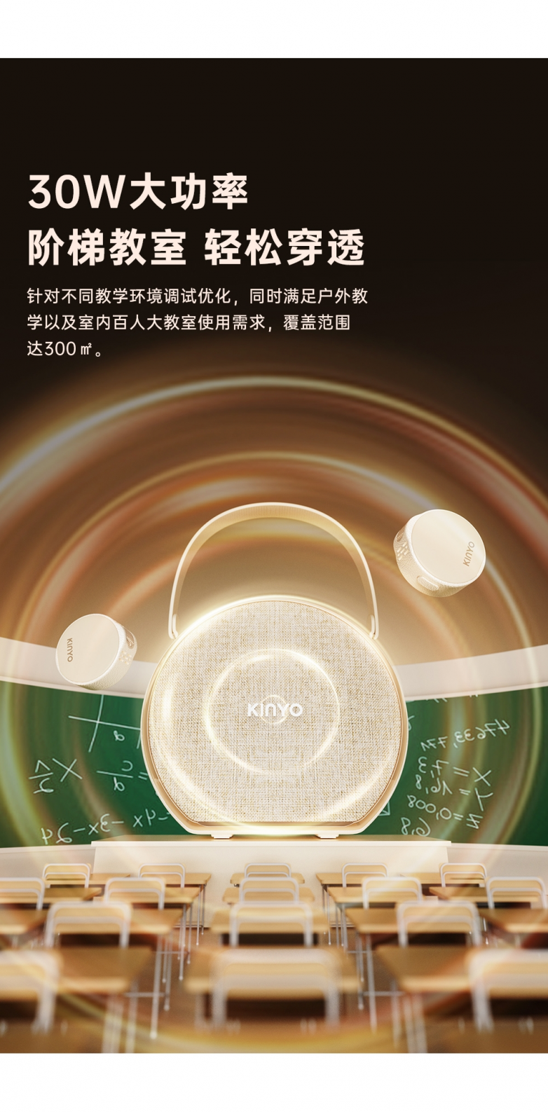 基于这一思考,中国智能音频品牌 KINYO金运 推出了全新旗舰级便携扩音器——M20磁吸双麦扩音器。这款产品不仅拥有77mm高保真内磁大喇叭、30W大功率、2.4G无线自由传输,还率先在便携扩音器领域引入“双麦互动”设计,从根本上解决了“声音传得远但不够清、互动慢且繁琐”的行业痛点,为教育、导览、会议及卖场带来全新的扩音体验。