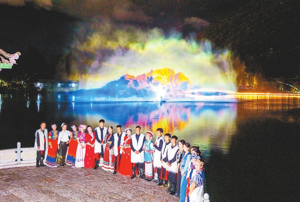 丽江市推出一系列文化惠民活动。从9月28日至10月20日,黑龙潭公园及玉河走廊街区每天18时至22时向公众免费开放。作为丽江夜游项目的升级之作,项目融合新科技与自然山水,打造出独一无二的“新”山水剧场,运用水幕投影技术在黑龙潭湖面再现“日照金山”“游龙在天”的壮丽奇景水幕大秀。此外,复原国家级非遗“热美磋”场景的《纳西魂打跳之夜》、再现马帮故事的《古道长歌》等一系列文化活动,让游客在沉浸式互动中,深度体验丽江独特的民族风情与历史底蕴。